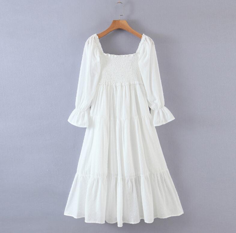 白ワンピース ワンピース 春 レディース シフォンワンピースきれいめ 長袖 スクエアトゥ襟 リゾートワンピ 無地 ホワイト 後ろリボン