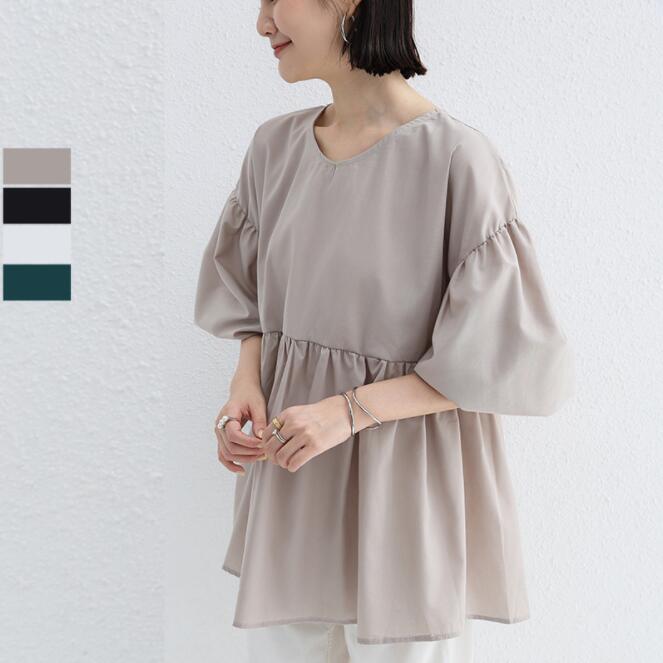 ブラウス レディース トップス 半袖 五分袖 バルーン袖 パフ袖 お洒落 フレア スクエアネック プルオーバーぽわん袖シャツブラウス ゆったり