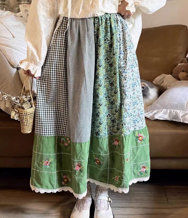 コーデュロイ スカート 森ガール 花柄スカート ぺチスカート ロング 裾レース コットン インナー ゆったり ナチュラル 綿 透け防止 透けない