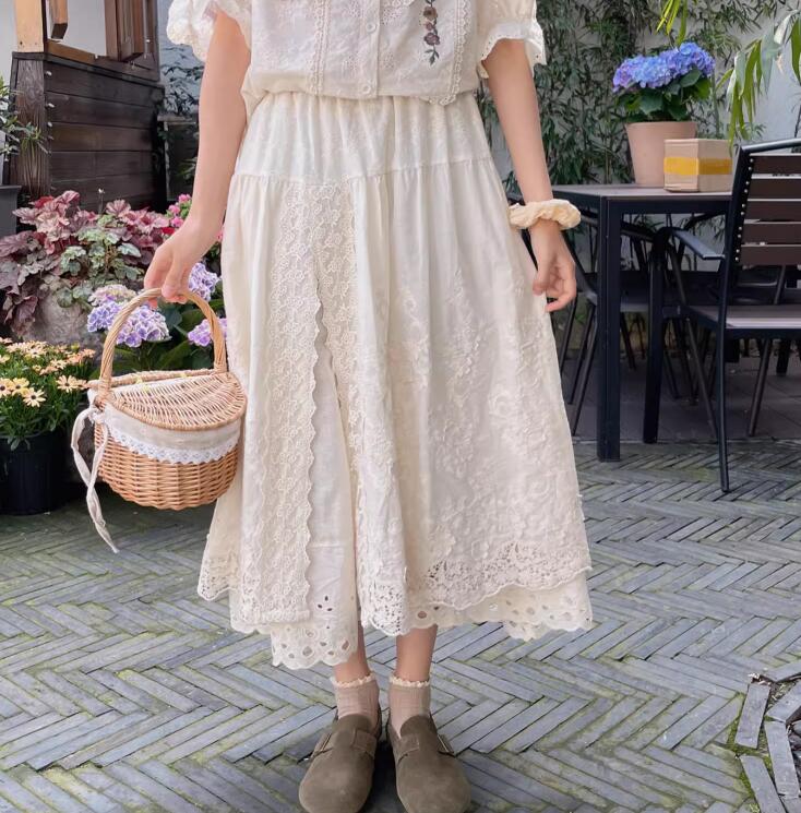 ロングワンピースレーススカート 森ガール ペチコート ぺチスカート ロング フリル フリル付き コットン インナー ゆったり
