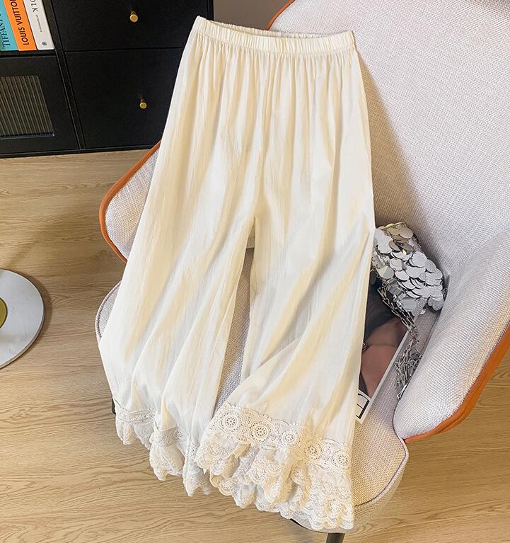 ペチパンツ春秋九分丈ロング丈ボトムス下着レディースレースかわいいナチュラルシンプルコットン重ね着カジュアル大人可愛い森ガール