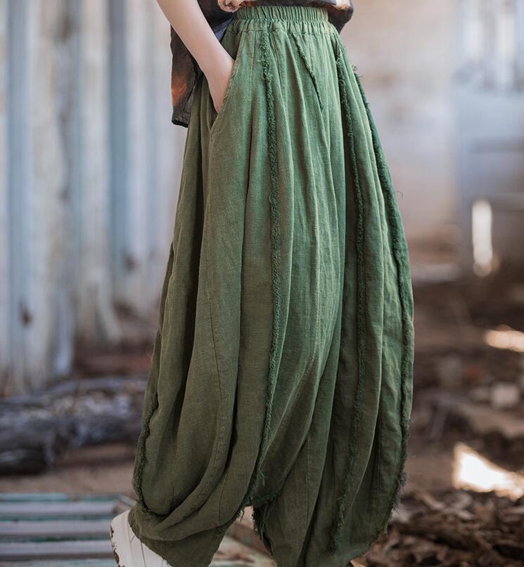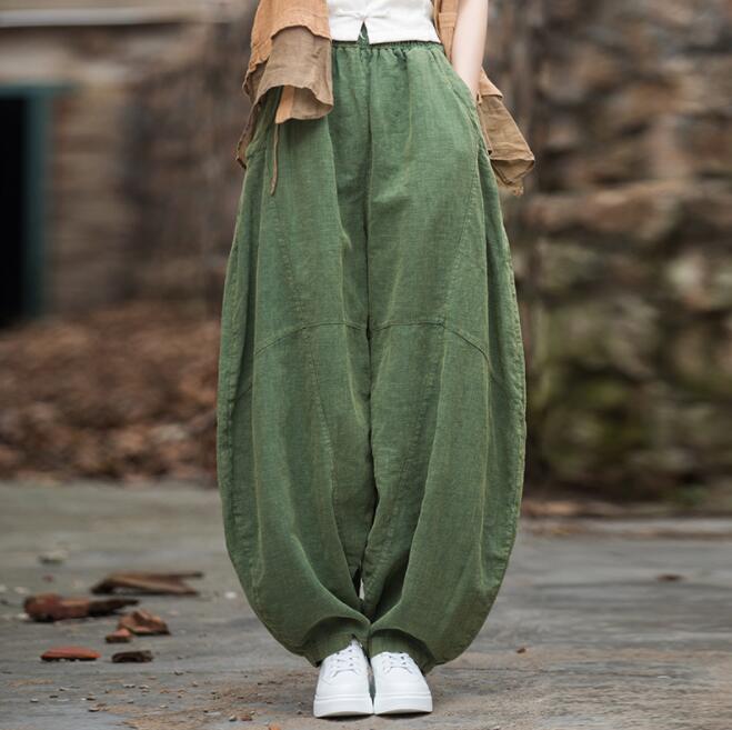 リネンパンツ バルーンパンツ 麻パンツ ロングパンツ ワイドパンツ 春 夏 レディース 綿麻 切り替え サルエルパンツ ハロンパンツ リラックスパンツ