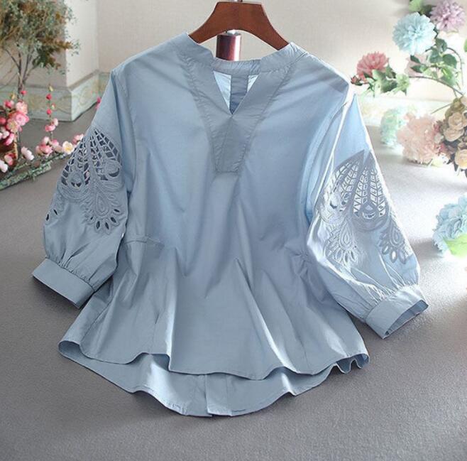 ブラウス レディース 5分袖 トップス スキッパーシャツ リネンシャツ シャツ 綿麻混 vネック 五分袖 レディースファッション 上品