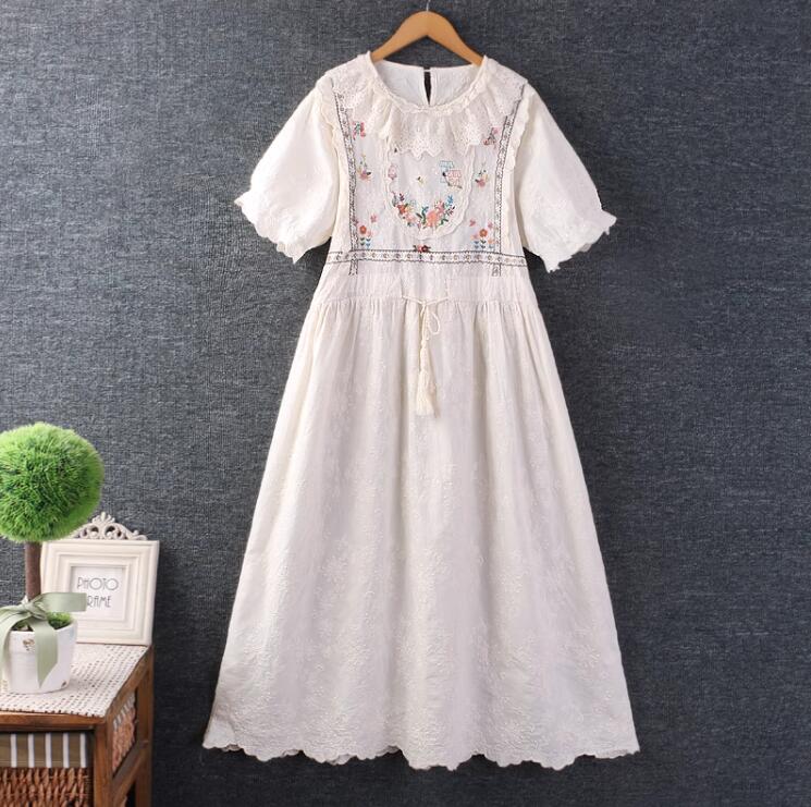 白ワンピース 無地 ロングワンピース レディース 森ガール可愛い 姫様 ロリータ風ワンピ マキシ丈 学生 可愛い 半袖 春秋 森ガール
