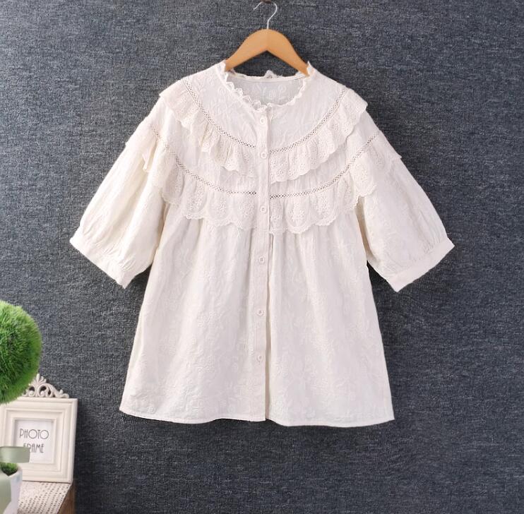 半袖ブラウス トップス レースブラウス レディース ブラウス 半袖 トップス 大人 可愛い 丸襟 トップス コットンブラウス 森ガール 大人