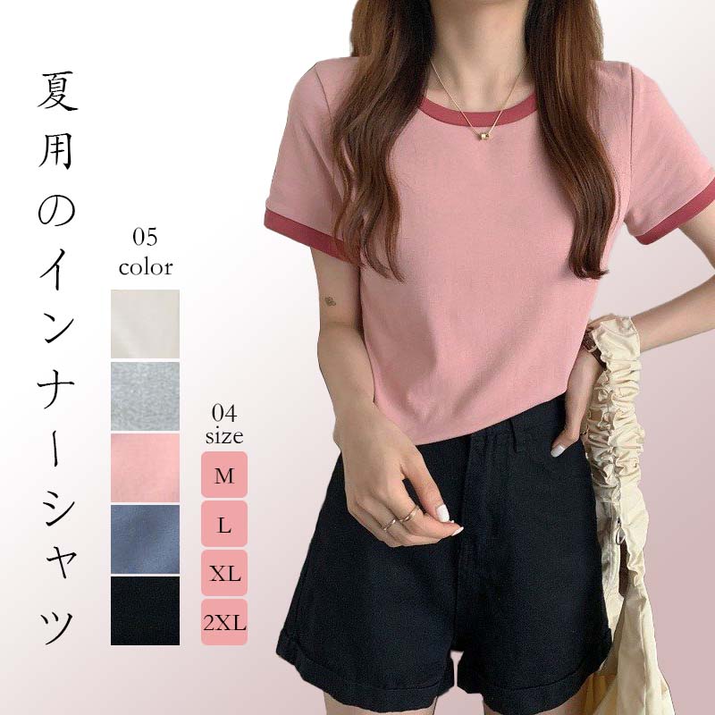 シャツ リブ レディース カジュアル トップス 半袖 ネック ラウンドネック 韓国 カジュアル 半袖おしゃれ カットソー ダークエンジェル