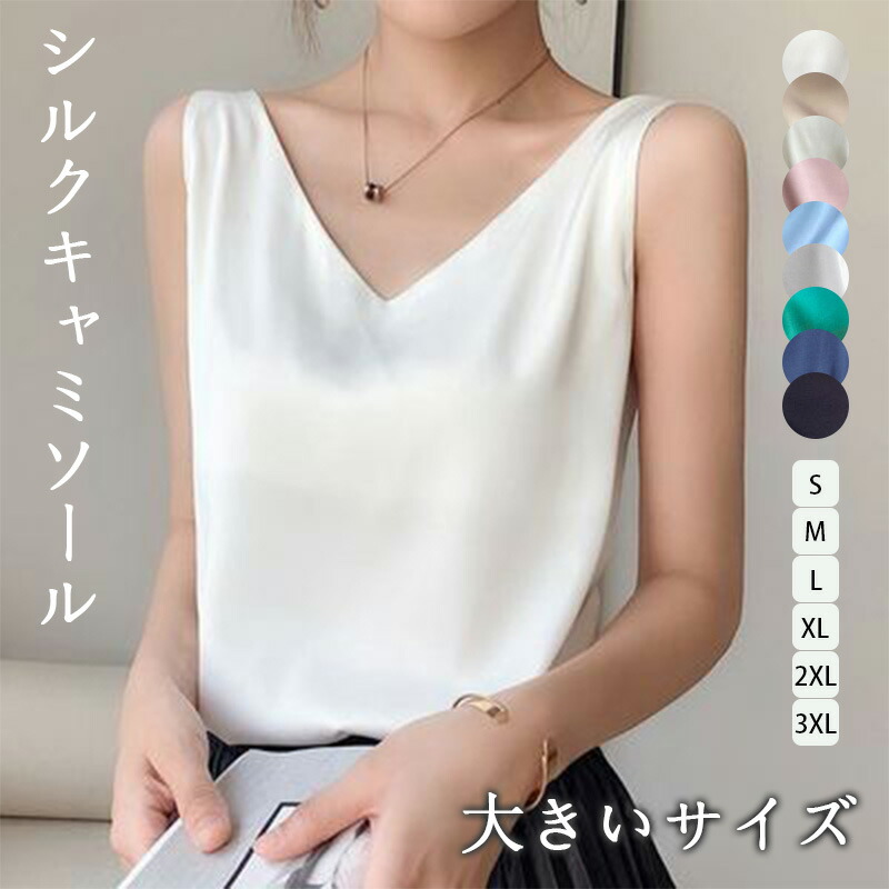 キャミタンク ノースリーブ vネック ショート丈 キャミソール インナー トップス タンクトップ レディース サテン 深v 光沢 夏 肌着 大きいサイズ おしゃれ きれいめ かわいい セクシー 大人