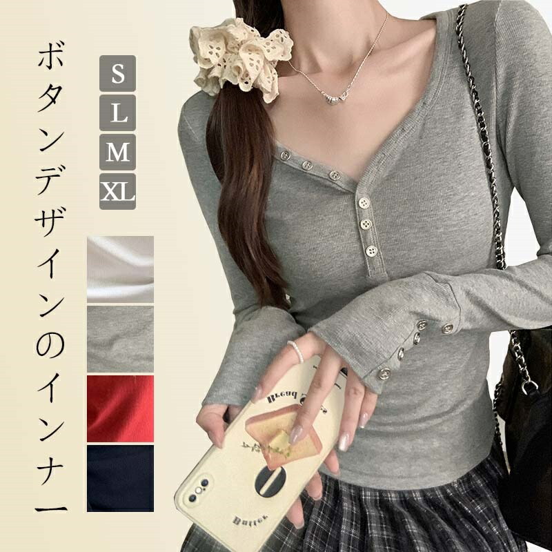 ネック ボタンのデザイン 長袖 袖ボタンリブニット トップス ニット リブニット レディースレディースファッション トップス シャツ ブラウス