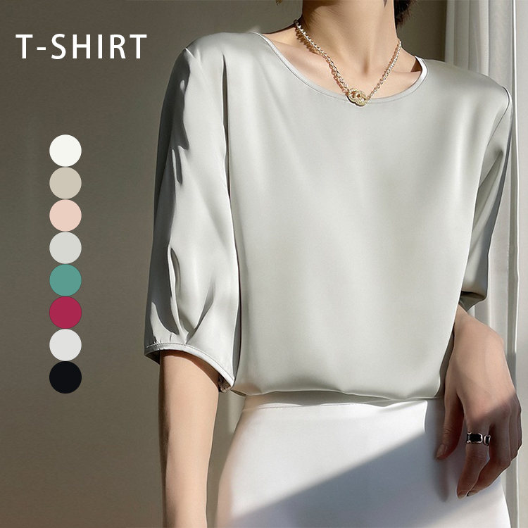 シャツ レディース トップス 五分袖 半袖 丸首 クルーネック 薄手 ゆったりレディースファッション トップス シャツ カットソー