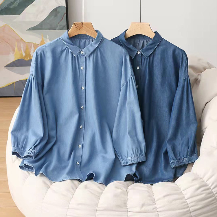 シャツ ブラウス レディース 七分袖 トップス 夏 夏服 ゆったり 夏シャツ デニムレディースファッション トップス シャツ ブラウス