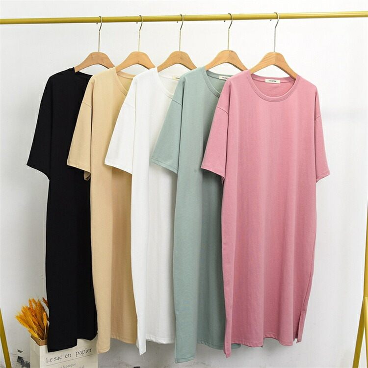 ワンピース 部屋着 レディース 半袖 夏 ゆったり クルーネック 丸首 無地 シンプル ロング丈 ロングワンピース