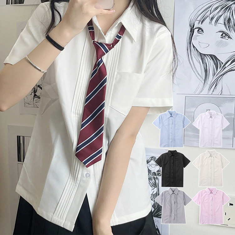 スクールシャツ シャツ ブラウス 半袖 レディース トップス 学生シャツ 半袖シャツ 角襟 ポケット付き