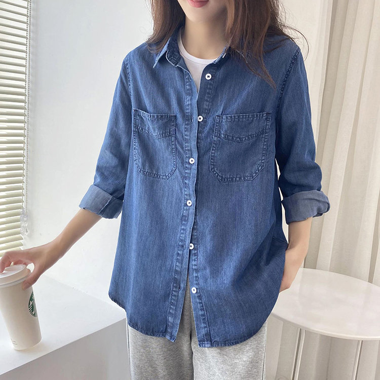 シャツ ブラウス シャツブラウス レディース トップス 長袖 薄手 秋 秋冬 ゆったり デニム デニムシャツ 無地 シンプル カジュアル ポケット付き 日常 綿 コットン 秋 秋服 秋物 春 春服 春