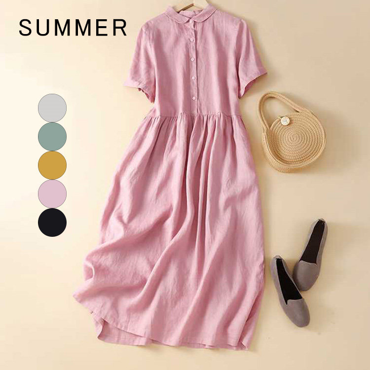 ワンピース レディース 半袖 シャツワンピーる ロング丈 無地 シンプル おしゃれ ゆったり ゆったり