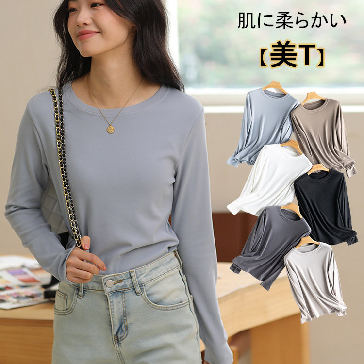 Tシャツ カットソー 長袖 トップス レディース 丸首 クルーネックレディースファッション トップス Tシャツ カットソー