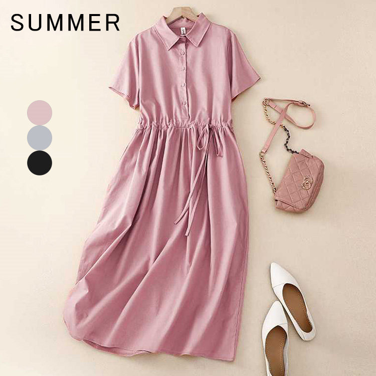 ワンピース レディース 半袖 シャツワンピーる ロング丈 無地 シンプル おしゃれ ゆったり ゆったり