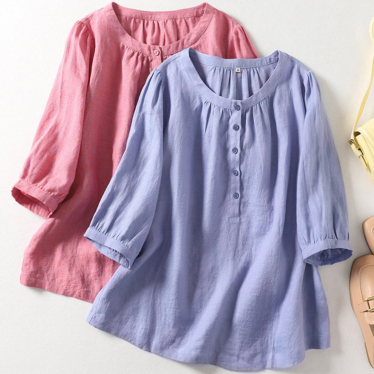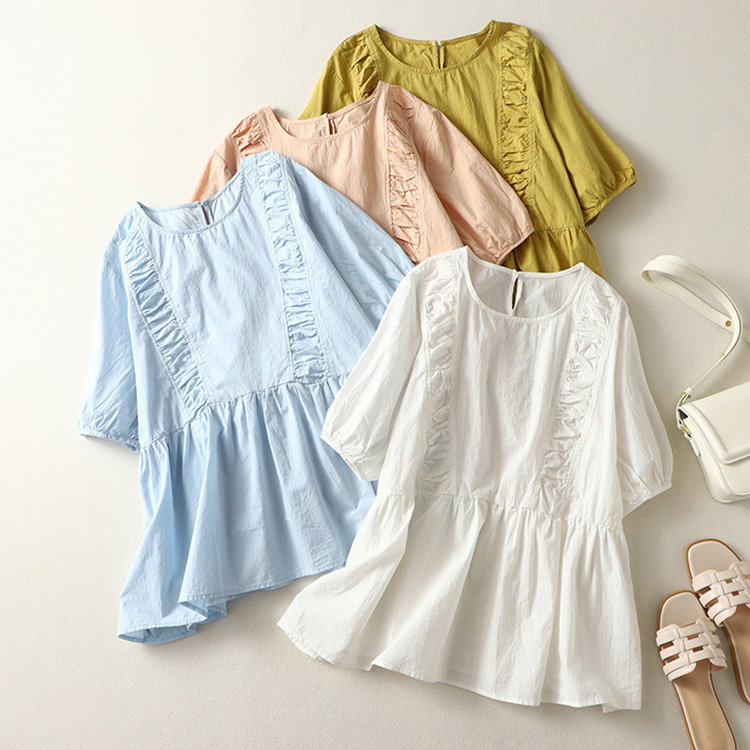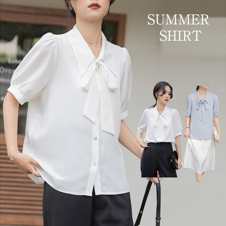 シャツ ブラウス レディース 半袖 トップス 夏 半袖シャツ 半袖ブラウス シャツブラウス 丸首ー 無地