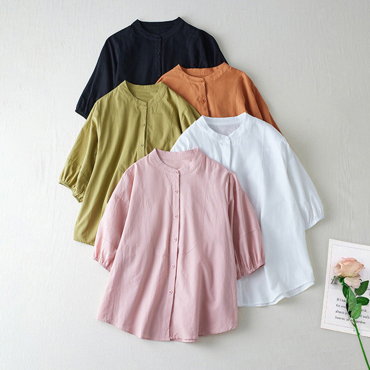 シャツ ブラウス レディース 半袖 トップス 夏 半袖シャツ 半袖ブラウス シャツブラウス 立ち襟 無地 シンプル