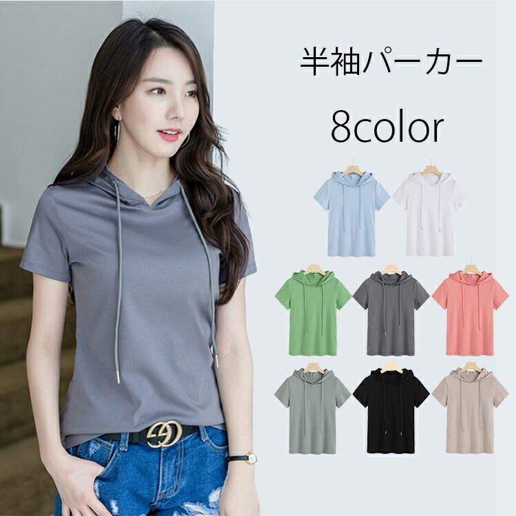 半袖パーカー レディース パーカー トップス 半袖 無地 シンプル フード付き フード付きパーカーレディースファッション トップス パーカー
