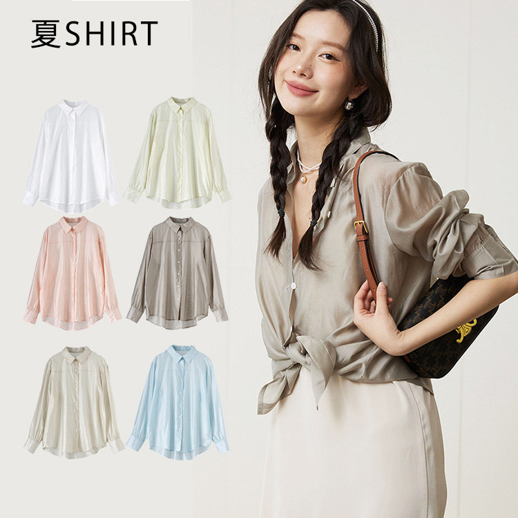 シャツ ブラウス 長袖 レディース トップス 薄手 UVカット 無地 シンプルレディースファッション トップス シャツ ブラウス