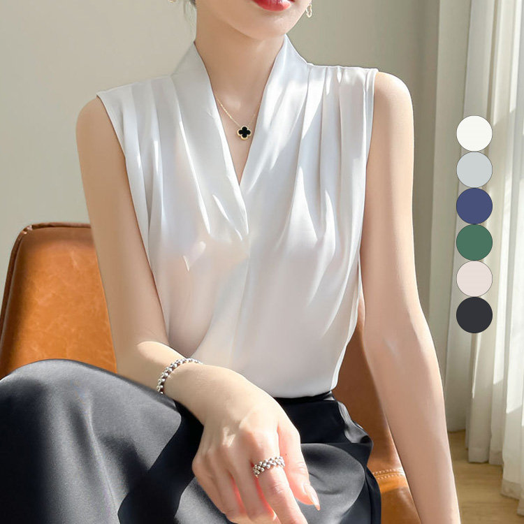 タンクトップ レディース トップス 夏 夏服 ノーカラー ノースリーブ 無地 Vネックレディースファッション トップス タンクトップ