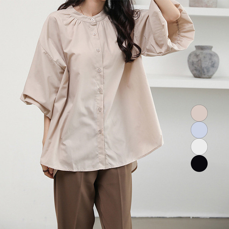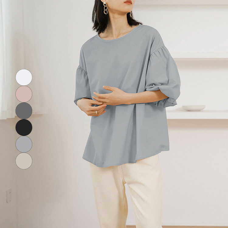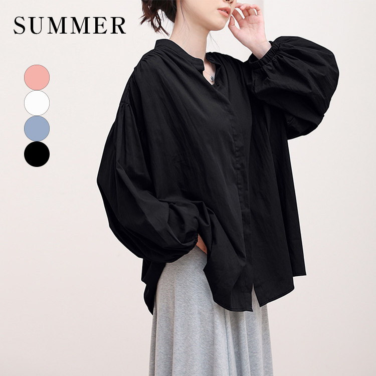 シャツ 長袖 夏 対応 パフスリーブ レディース 薄手 ゆったり コットン 綿 ゆったり ゆるシャツ