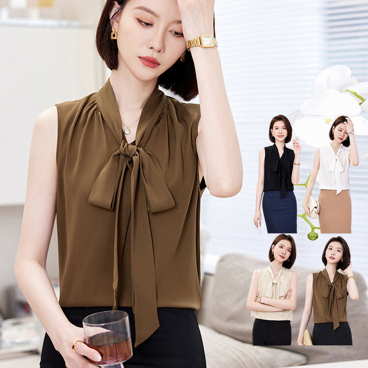 ブラウス ノースリーブ レディース プルオーバー 通勤 オフィス リボン付き ノーカラーレディースファッション トップス シャツ ブラウス