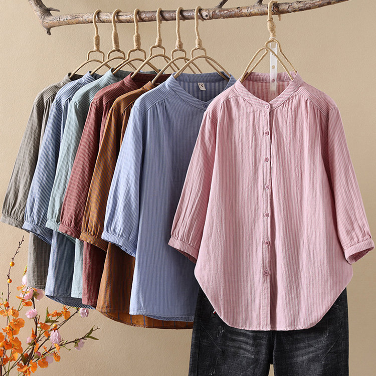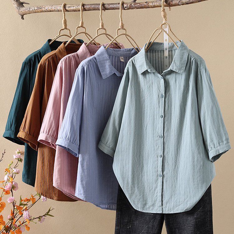 シャツ 七分袖 レディース トップス 夏 夏服 ゆったり カジュアル 無地 シンプル おしゃれ 女子 女性 カジュアルシャツ