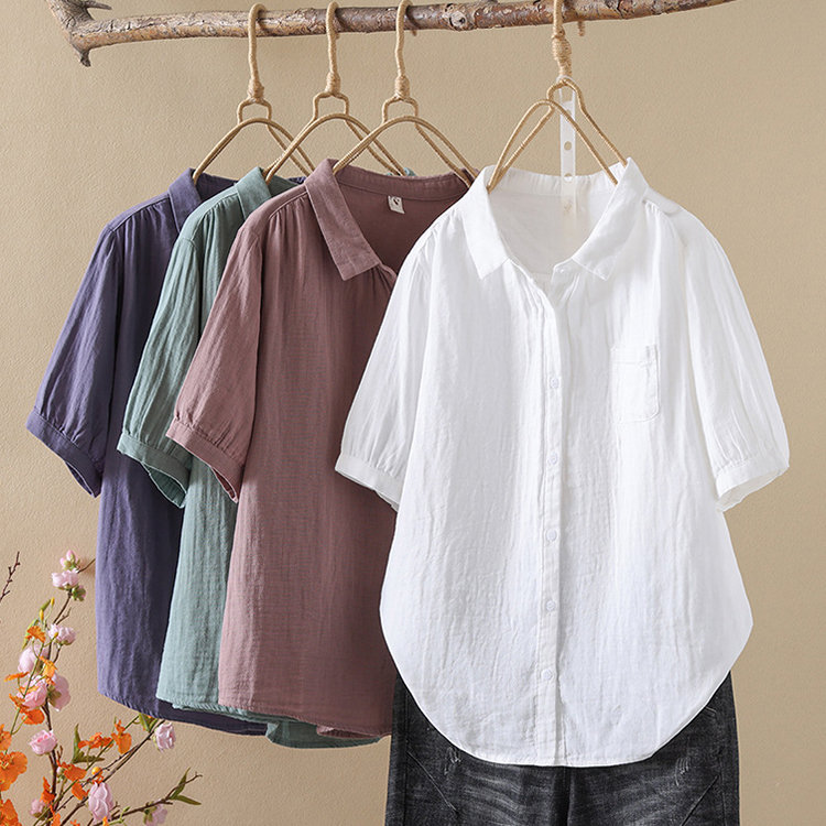 シャツブラウス 半袖 レディース トップス 夏 薄手 ゆったり クルーネック 丸首レディースファッション トップス シャツ ブラウス