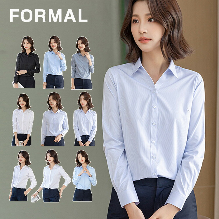 シャツ レディース 長袖 長袖シャツ トップス ワイシャツ 白シャツ 白ブラウス ビジネス 通勤 オフィス 出張 就活