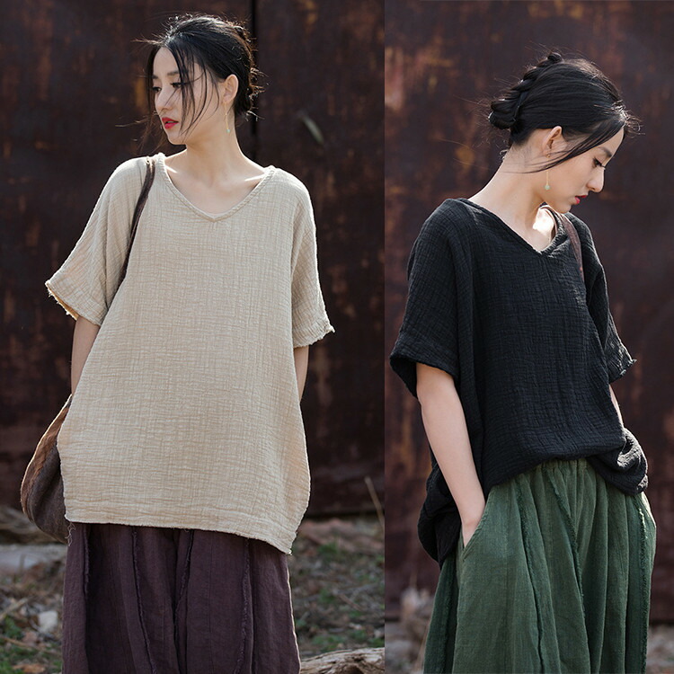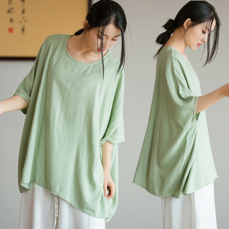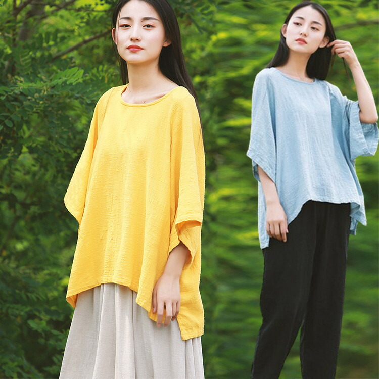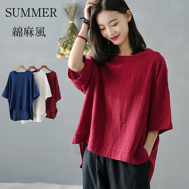 シャツ カットソー レディース トップス 薄手 ゆったり 綿麻風 ゆるTシャツ カジュアル 無地 シンプル おしゃれ 軽量 夏 夏服 夏物 体型カバー ビッグシルエット