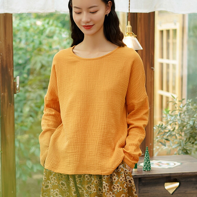 シャツ 長袖 レディース トップス 丸首 クルーネック 綿 コットン 柔らかい 着心地い良いレディースファッション トップス シャツ カットソー