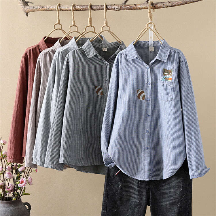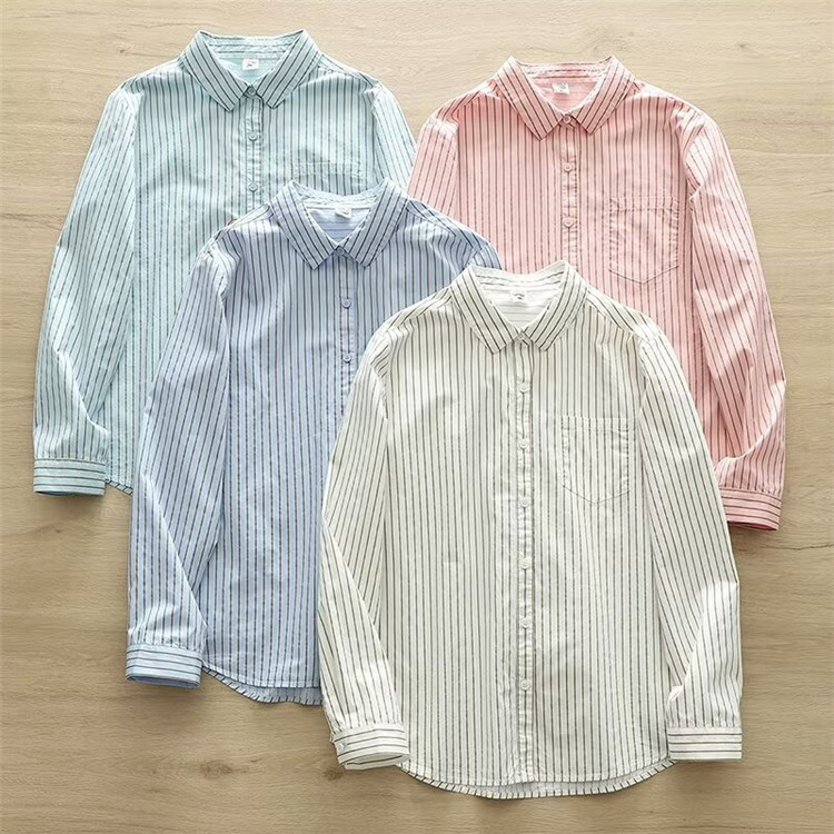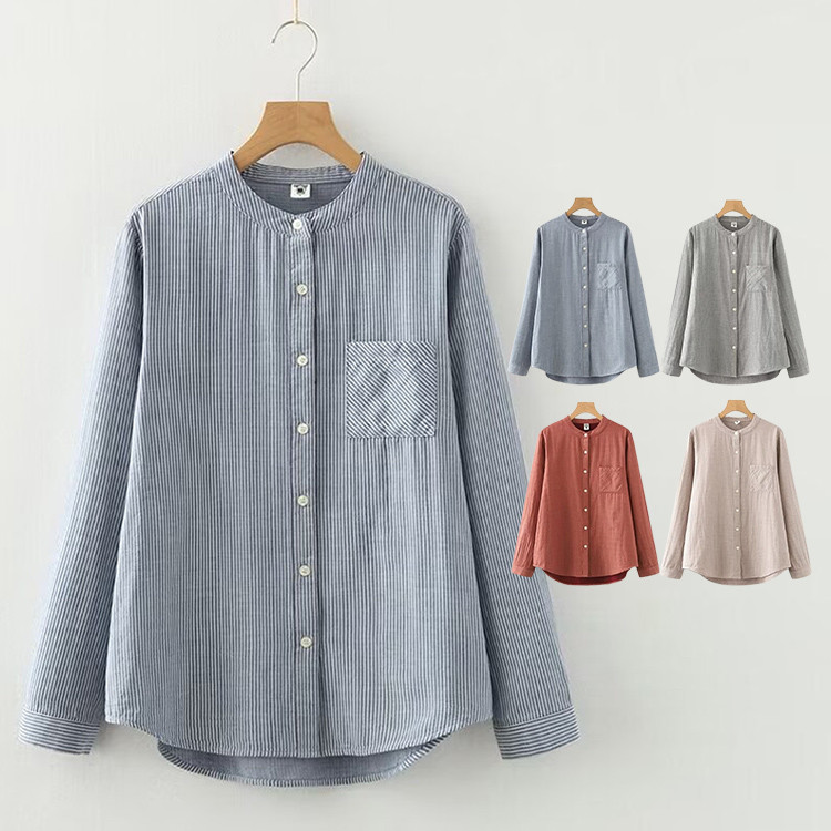 長袖シャツ シャツ レディース トップス ストライプ ガーゼー おしゃれ 秋 秋服 秋シャツ ゆったり かわいい 可愛 秋コーデ 女子 女性 女の子 レディースファッション