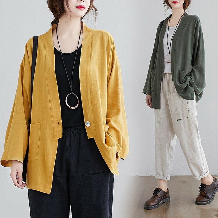カーディガン レディース 長袖 トップス アウター ゆったり 前開き Vネック ライトアウター ゆったり 大きいサイズ カジュアル シンプル ポケット付き 秋 秋服 秋物