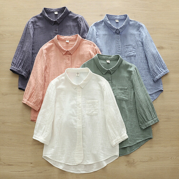 シャツ レディース 半袖 半袖シャツ トップス ゆったり カジュアル カジュアルシャツ ワイシャツ 綿 コットン 綿シャツ ガーゼー 無地 シンプル おしゃれ きれいめ 薄手