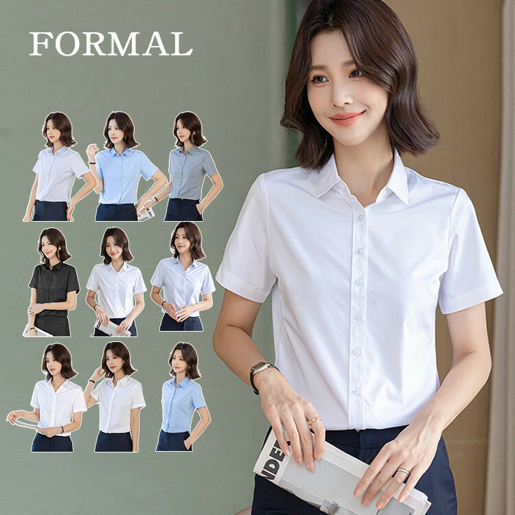 シャツ レディース 半袖 半袖シャツ トップス ワイシャツ 白シャツ 白ブラウス ビジネス 通勤 オフィス
