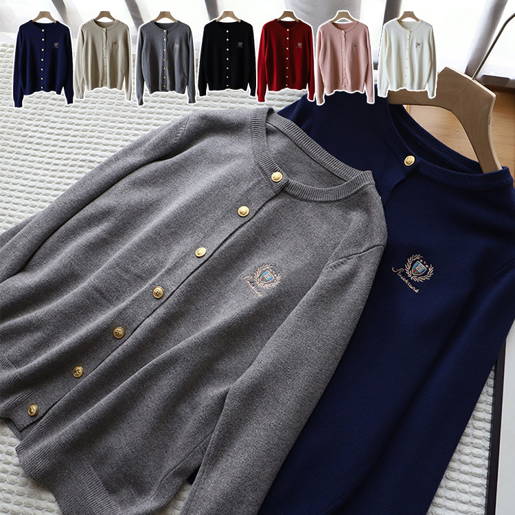 カーディガン レディース トップス シンプル カジュアル かわいい クルーネック 丸首 ニット ニットセーター セーター おしゃれ 可愛 秋 秋服 秋物