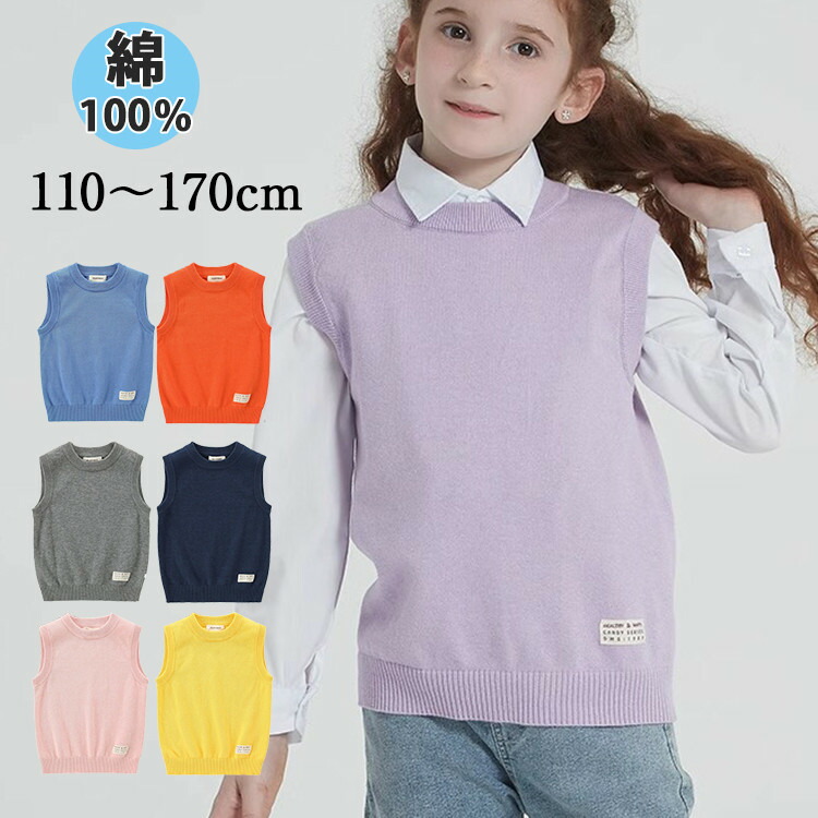 ニットベスト スクールベスト 綿100% コットン キッズ 子供 幼稚園 小学生 中学生 学生制服 学生服 ベスト