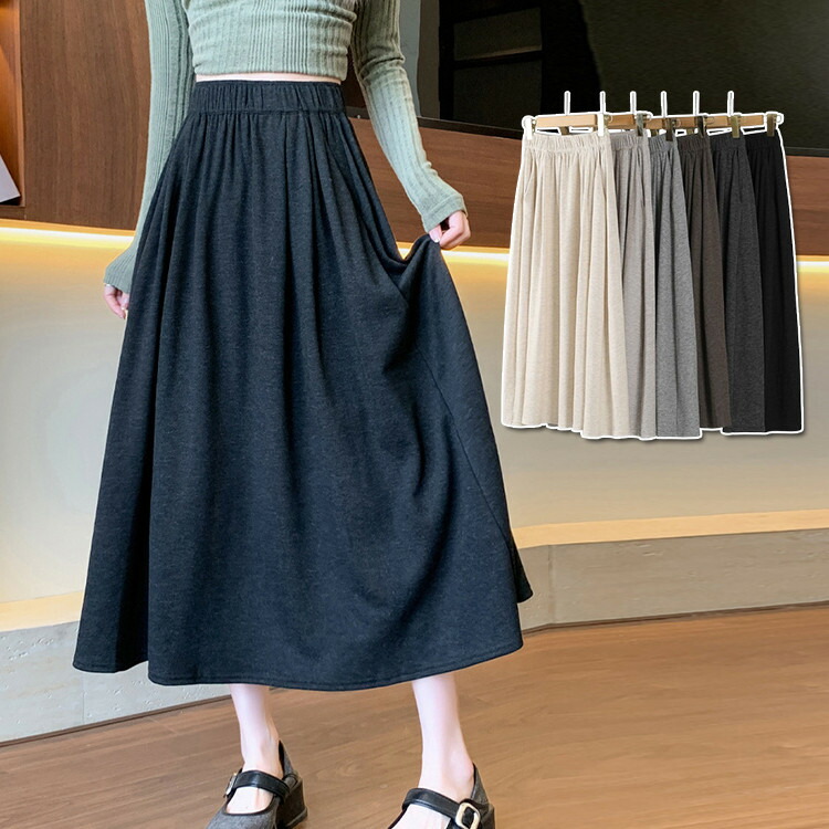 スカート ニットスカート レディース 秋 冬 ボトムス ロング丈 ハイウエスト aライン aラインスカート 無地 シンプル