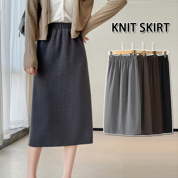 スカート ニットスカート レディース 秋 冬 ボトムス ロング丈 ハイウエスト ライン ラインスカート 無地 シンプル