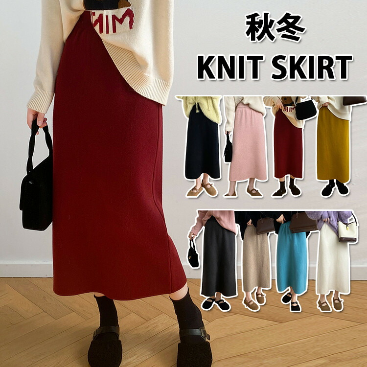 スカート ニットスカート レディース 秋 冬 ボトムス ロング丈 マキシ丈 ハイウエスト aライン aラインスカート