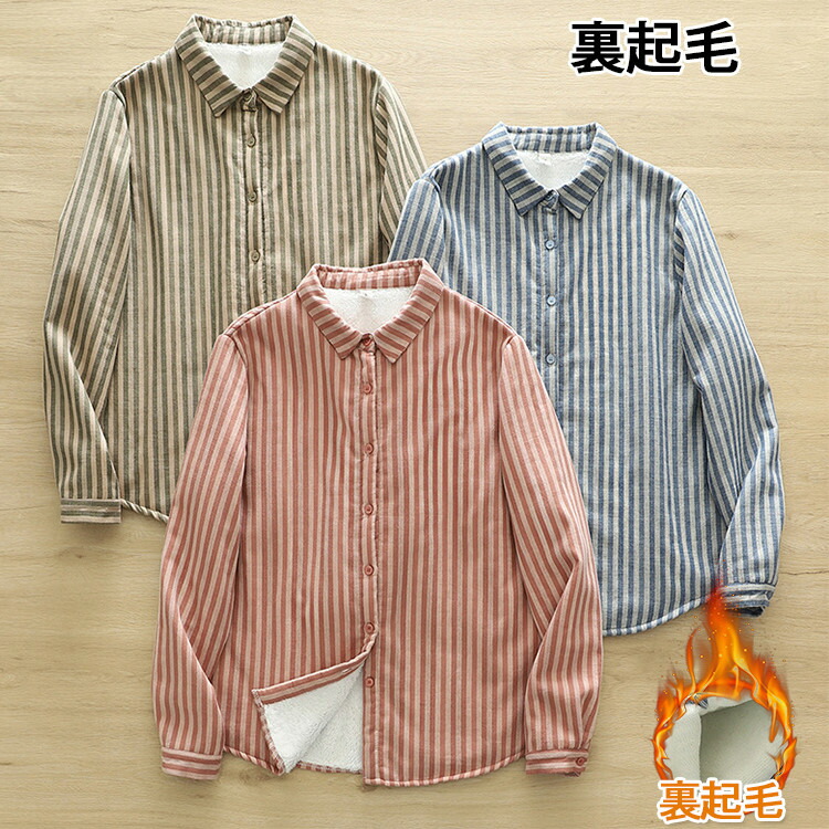 シャツ 長袖 トップス レディース 柔らかい 秋 冬 前開き 防寒 保温 無地 シンプル カジュアル おしゃれ