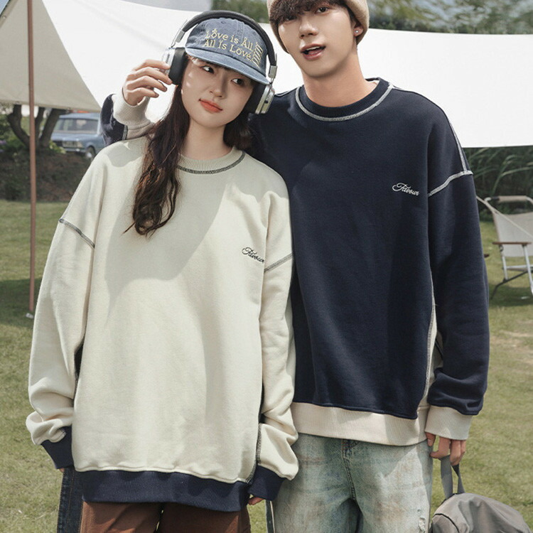 トレーナー レディース メンズ 男女兼用 カップル トップス 長袖 プルオーバー クルーネック 配色