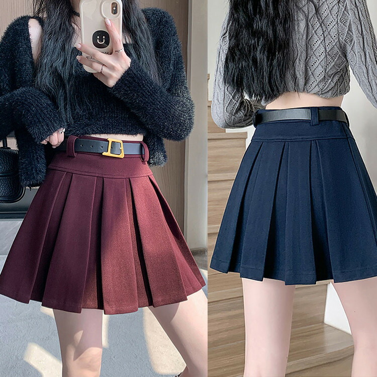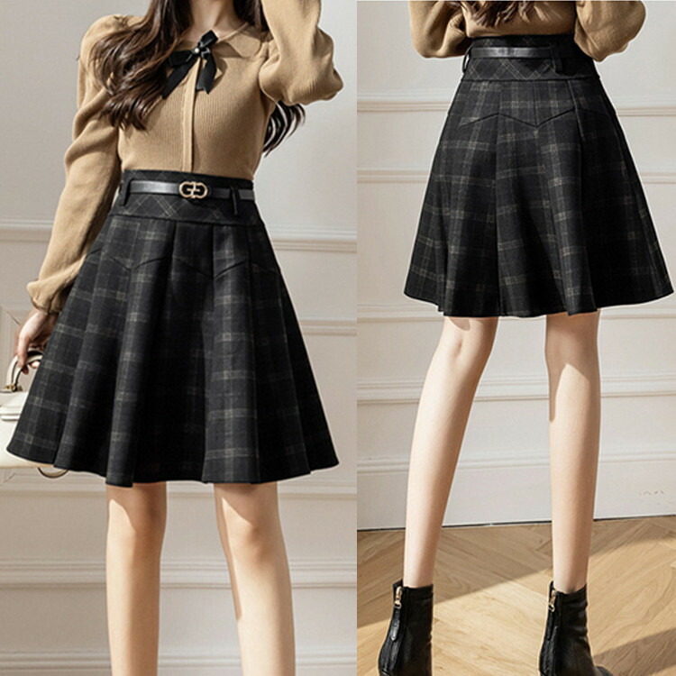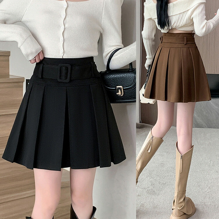スカート ショート丈 レディース 冬 おしゃれ aライン ショートスカート きれいめ ハイウエスト プリーツスカート