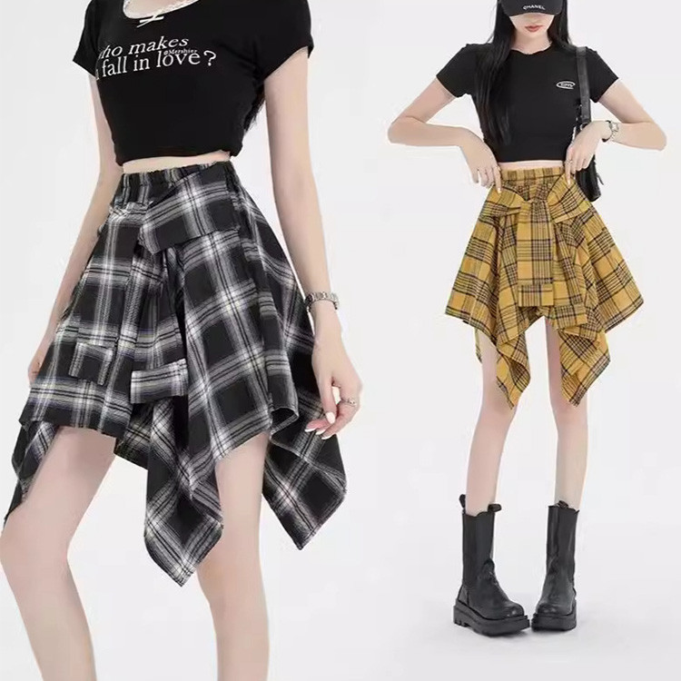 スカート レディース 不規則 チェック柄 ミニスカート かっこいい おしゃれ カジュアル ウェストゴム 運動 スポーツ ショート丈 ショートスカート
