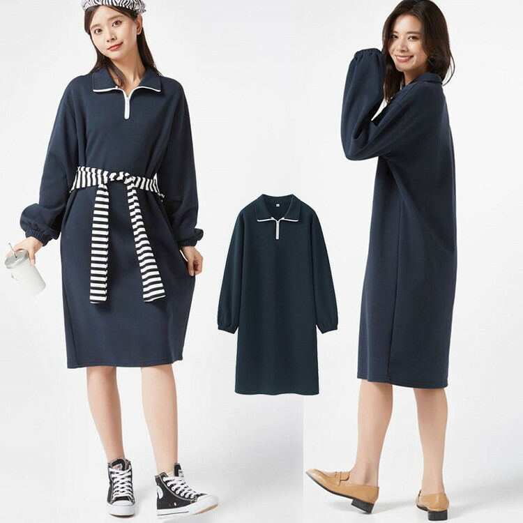 ワンピース レディース 膝丈 春 長袖 カジュアル ゆったり 無地 シンプル おしゃれレディースファッション ワンピース