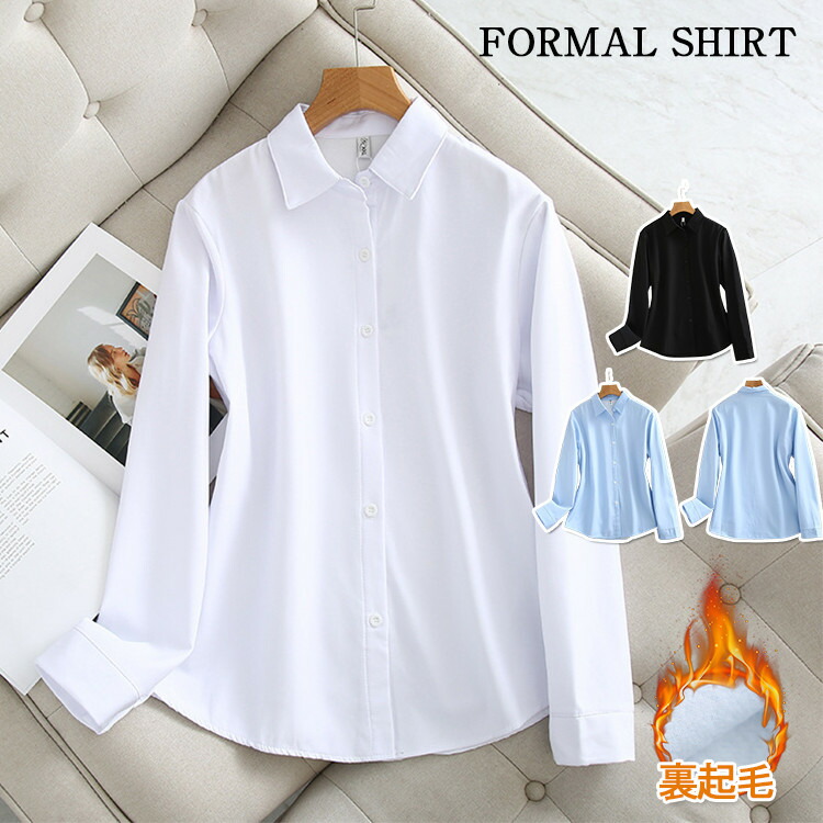 シャツ フォーマル ワイシャツ 冬 厚手 裏ボア 防寒 通勤 ビジネス レディース 大きいサイズ 長袖シャツ 前開き 白シャツ