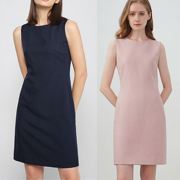 ワンピース ノースリーブ エレガント スーツワンピース ビジネス クルーネック ライン 無地 シンプル 通勤 オフィス