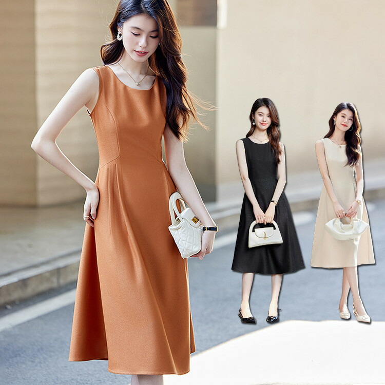 ワンピース ノースリーブ レディース 薄手 春 夏 無地 シンプル エレガント 通勤 オフィスレディースファッション ワンピース