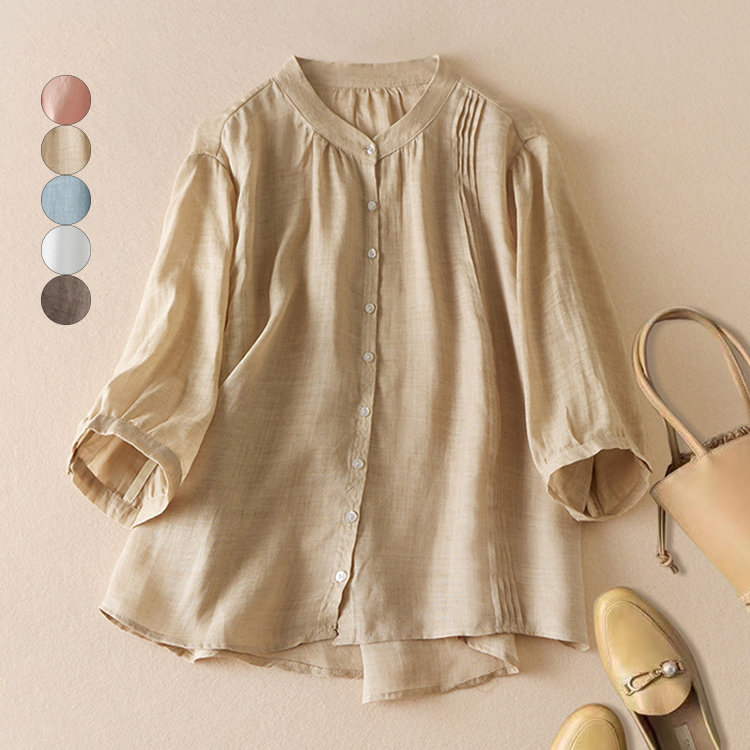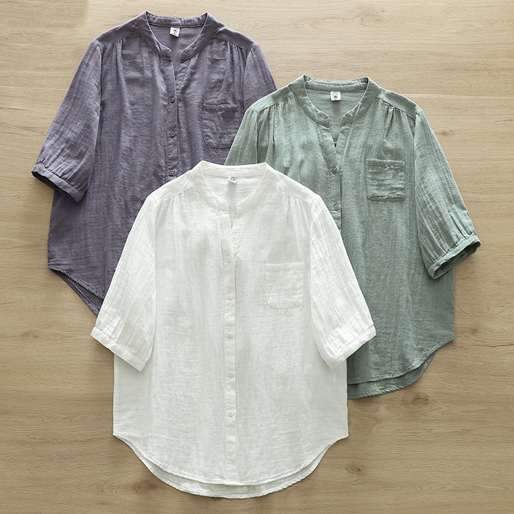 シャツ 半袖 レディース トップス Vネック 前開き ゆったり 着心地いい 綿 コットン ガーゼ ガーゼシャツ 半袖シャツ 立ち襟 夏 夏服 おしゃれ きれいめ 無地